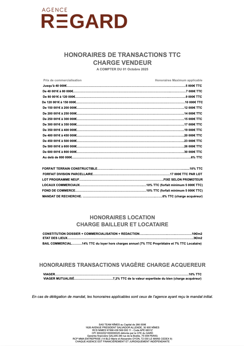 Barème des honoraires